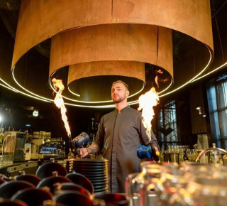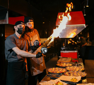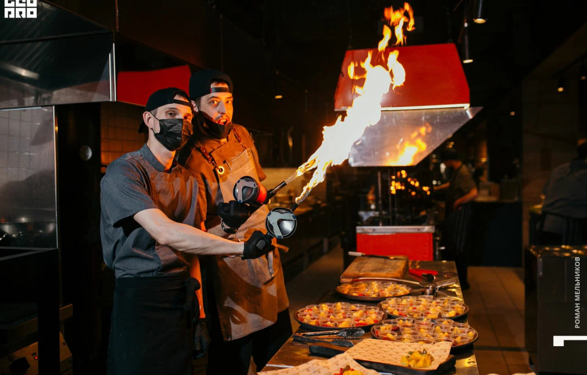 Сердце заведения — горячий цех, который всегда открыт гостям. Здесь популярные и знакомые вам блюда обретают новые вкусы, пройдя через технологию открытого огня: печь, гриль, вертел и смокер