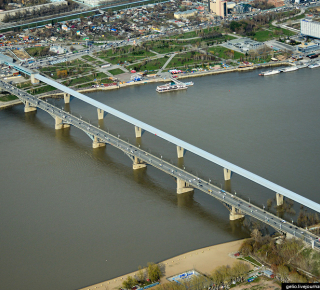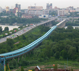 - Левобережная эстакада — остеклённый зелёный короб-галерея с аналогичными оконными проёмами 2 м на 2 м, имеет длину более 1 км.