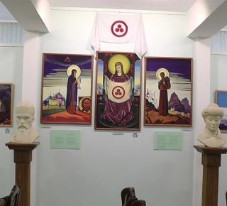 - акварели Бориса Абрамова, фотокомпозиции, посвящённые семье Рерихов.