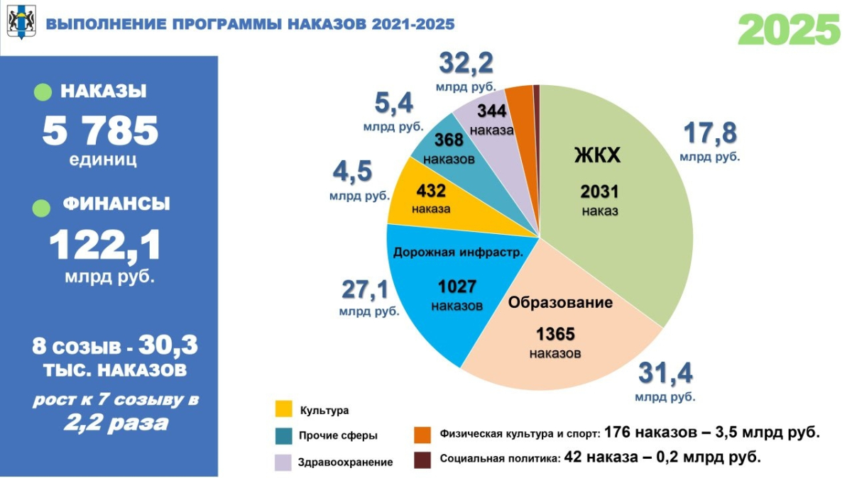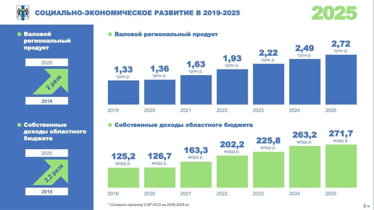 В своём выступлении губернатор отметил, что по сравнению с 2019 годом валовой региональный продукт Новосибирской области увеличился вдвое. Ещё более впечатляющий рост продемонстрировали объёмы строительных работ и инвестиций, превысив показатели 2019 года более чем в 2,5 раза. Эти достижения особенно значимы на фоне непростой экономической ситуации, в которой правительство области в 2025 году сделало ставку на завершение уже начатых проектов.